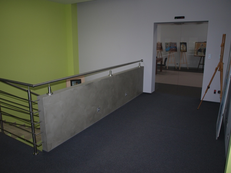 Prace rozpoczęliśmy od przygotowania istniejącej płyty OSB oraz zerwania starej wykładziny. Następnie mogliśmy przystąpić do montażu wykładziny dywanowej Rivoli w dwóch kolorach oraz wykładziny Lima. Zainstalowane zostały również malowane pod kolor wykładziny listwy Floorstyl FL5